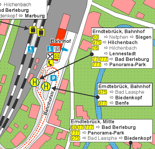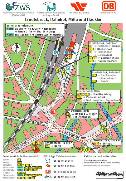 Für jeden Haltestellen-Abfahrtsplatz wurden die dort verkehrenden Buslinien mit Linienweg und Endziel aufgelistet, sodass Fahrgäste schnell den richtigen Abfahrtsplatz finden können. sätzliche Orientierung bieten eine Erreichbarkeitstabelle mit den Anbindungen an verschiedene Ortsteile sowie die Telefonnummern der Verkehrsbetriebe und des Zweckverbandes ÖPNV. Diese Haltestellen-Funktionspläne stellen somit ein wichtiges Instrument dar, um den Umstieg an Knotenpunkten zu erleichtern und den ÖPNV insgesamt attraktiver und übersichtlicher zu gestalten.